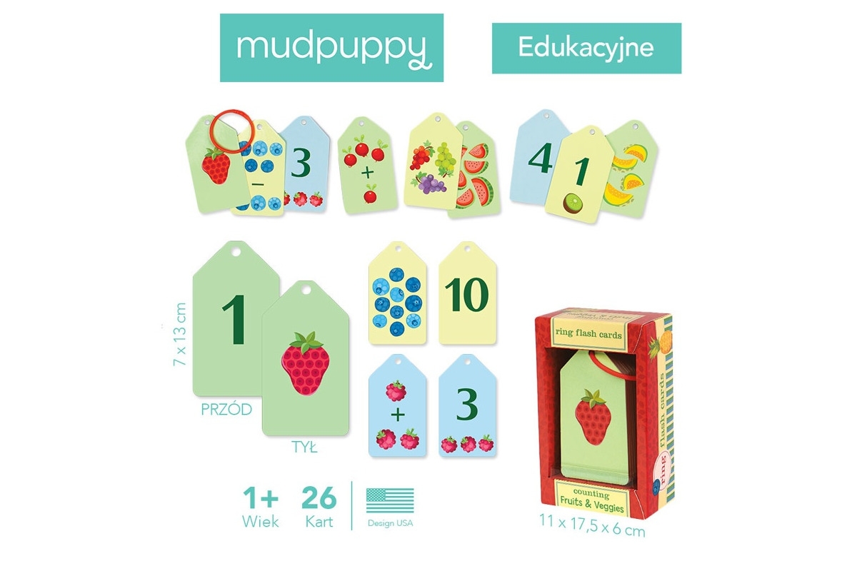 z odpowiadającą jej liczbą owoców lub warzyw (m. in. malin, groszku w strąkach czy rzodkiewek).