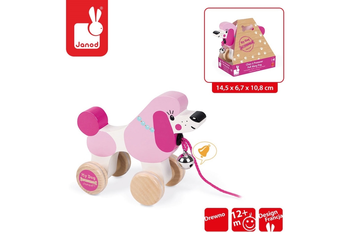 PUDELEK drewniany piesek do ciągnięcia