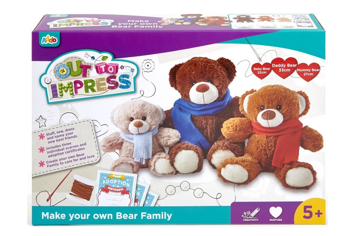 – przytulanki – misie 3szt., wypełnienie 3 szt., 3 szaliki, plastikową igłę,