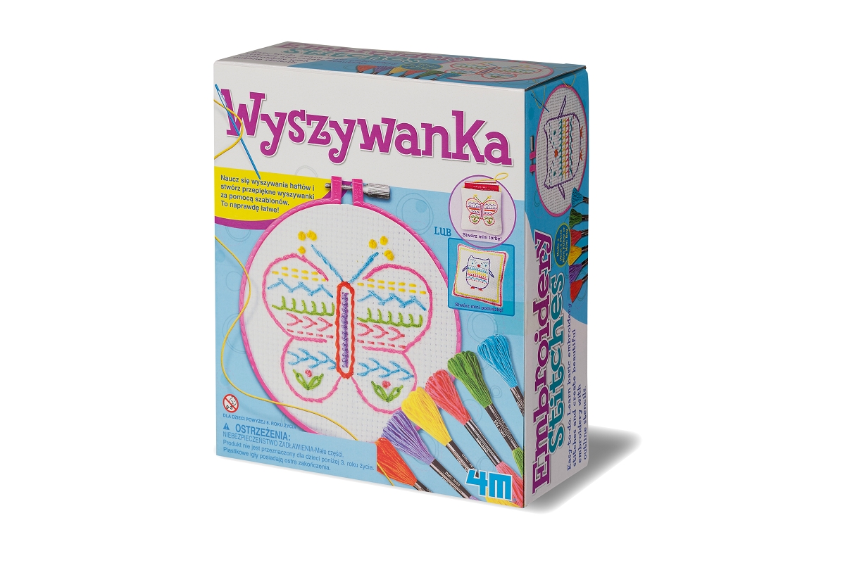 – tamborek, 3 arkusze płótna, 6 kolorowych mulin,