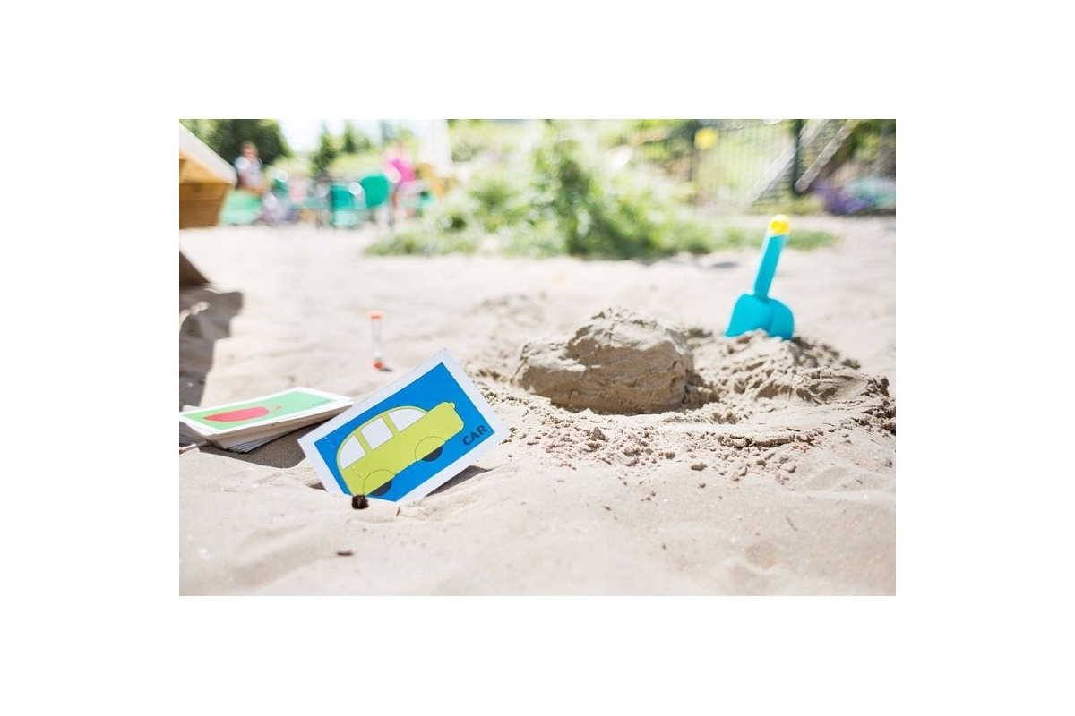 – łopatkę, klepsydrę, bawełniany woreczek oraz 60 kart z rysunkami.