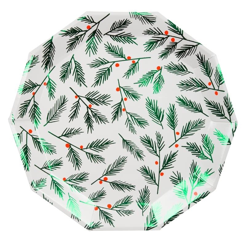 Duże talerzyki papierowe Meri Meri (8szt.) – świąteczne gałązki