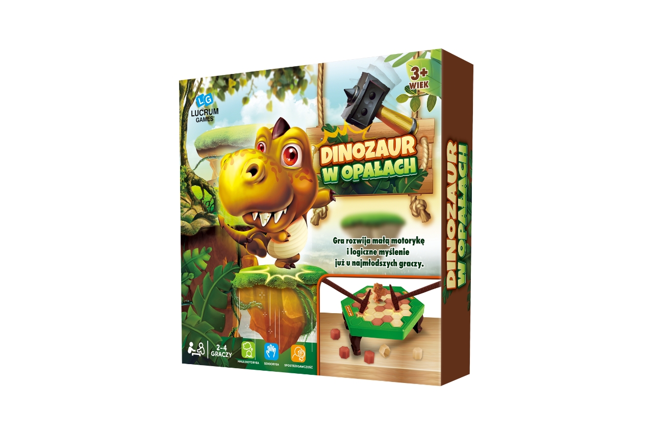 Zakręć strzałką i wybij młotkiem wskazany przez nią kamień (albo i dwa). Gracz, który sprawi, że dinozaur całkowicie straci grunt pod nogami, przegrywa… i musi posprzątać. Ale może także zażądać rewanżu!