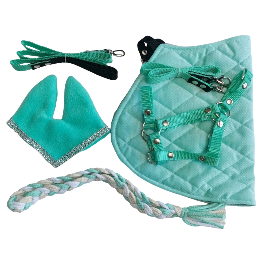 Duży Zestaw Osprzętu dla Hobby Horse’a A4 ⭐⭐⭐⭐⭐Trafny wybór 6 elementów osprzętu: Kantar Wodze Uwiąz Cordeo Nauszniki Derka ✅Produkt ręcznie wykonany w naszej pracowni ✅Rozmiar dostosowany do koników A4 z oferty Horse Club ✅Prosty i wygodny montaż ✅Wybór spośród  kombinacji kolorów Czerwony + srebrne wykończenia Granat + srebrne wykończenia Jasny róż + srebrne wykończenia Mięta + srebrne wykończenia Czarny + srebrne wykończenia Ciemna zieleń +srebrne wykończenia ✅Ciekawe akcesoria, które będą podziwiać inni fani HH Zwróć uwagę na detale. Zapewniamy solidne nity i wytrzymałe  kółka dla twojej pewności użytkowania i pięknego wyglądu.   Komplet dopasowany do konika w rozmiarze A4 od Horse Club * akcesoria są zwymiarowane dla naszych koników, mogą nie pasować do produktów innych producentów.