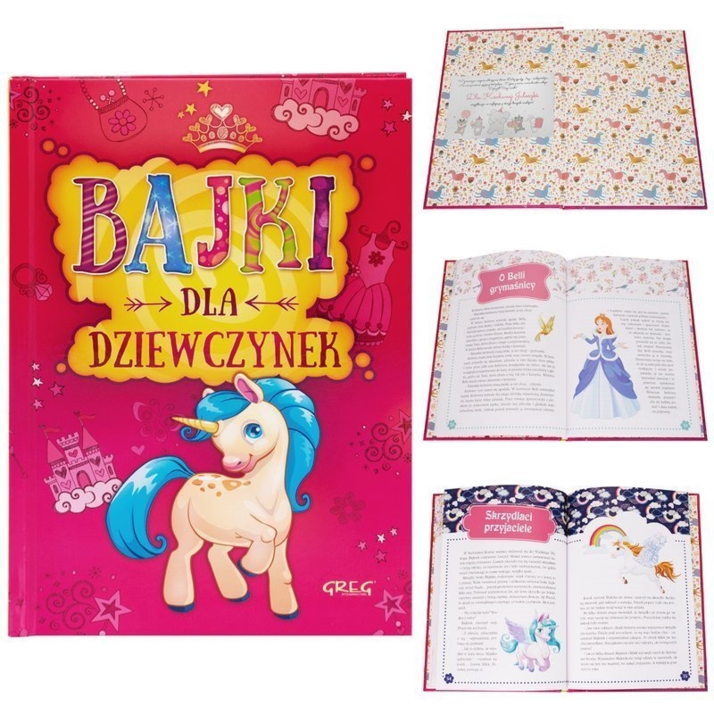 29 bajek o królewnach i pegazach w twardej okładce oraz tabliczka dedykacyjna z tekstem, zdjęciem lub grafiką