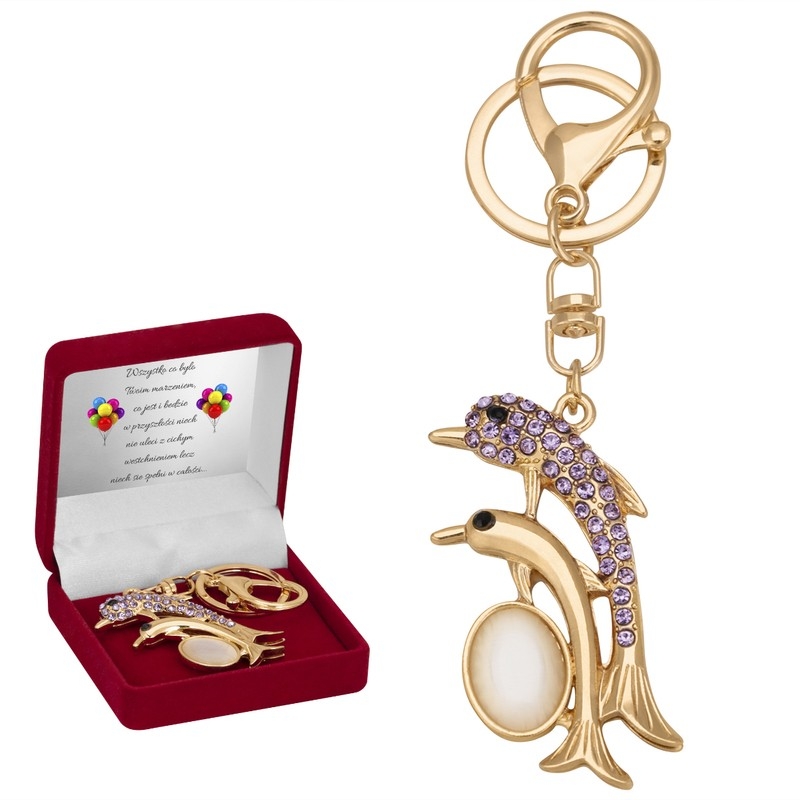 Breloczek do kluczy z kryształami Delfinka Prezent Grawer