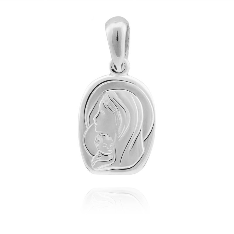 Chrzciny lub Komunia: srebrny medalik Matka Boska 925 z dzieciątkiem