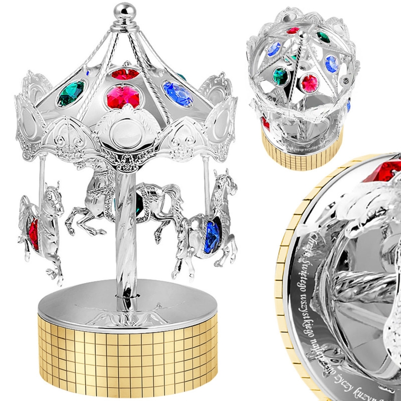 Duża karuzela pozytywka koniki z kryształami, melodia It’s a Small World i grawer laserowy na podstawie (150 znaków max)