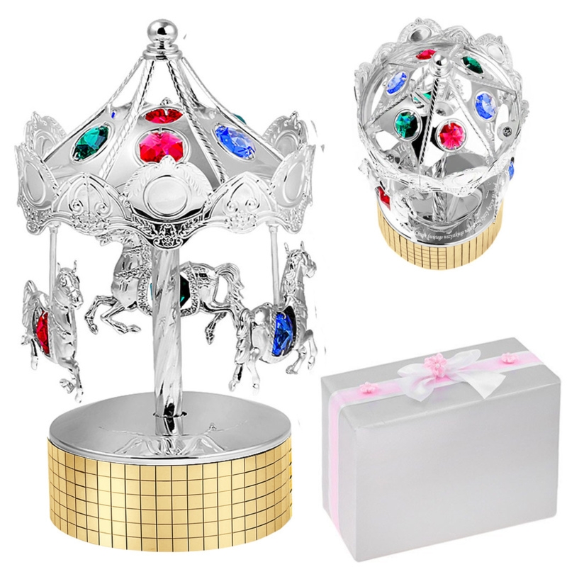 Duża karuzela pozytywka z kryształami, grawer laserowy na podstawie do 150 znaków i pakowanie na prezent w cenie, melodia It’s a Small World