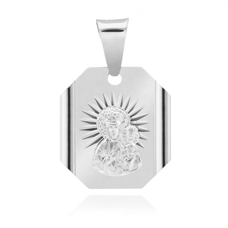 Srebrny medalik z wizerunkiem Matki Boskiej Częstochowskiej, srebro próby 925, grawer laserowy na rewersie (np. imię, data)