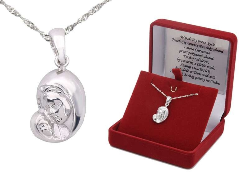 Chrzest i Komunia: rodowany medalik Matka Boska 925 z dedykacją