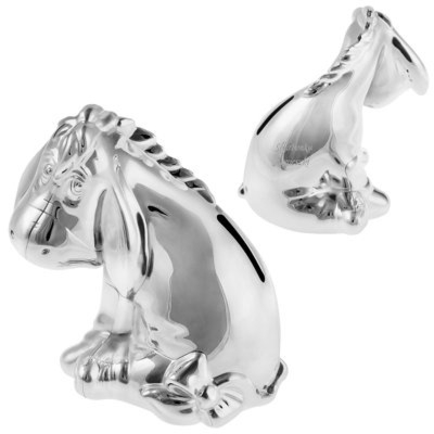 Posrebrzana skarbonka Kłapouchy z grawerem laserowym z tyłu na tułowiu, w zestawie pudełeczko tekturowe