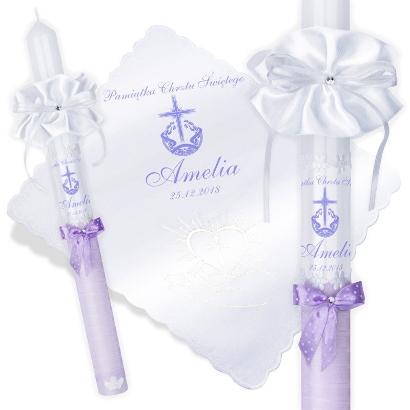Chrzest lub Komunia: zestaw świecy i szatki ze zdjęciem G16