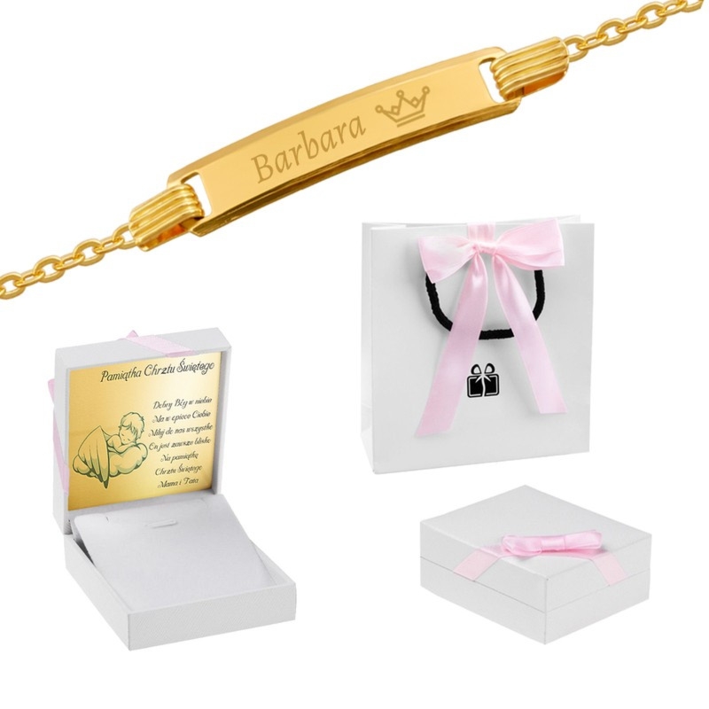 Chrzest lub komunia: złota bransoletka 585 na łańcuszku z grawerem