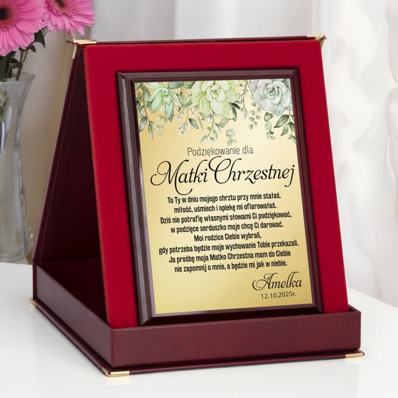 Chrzest: Podziękowanie dla matki chrzestnej z dedykacją w etui