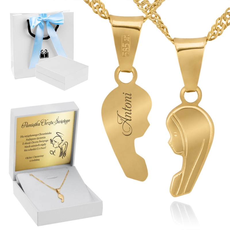 Chrzest: Złoty medalik Matka Boska 585 z grawerem i łańcuszkiem