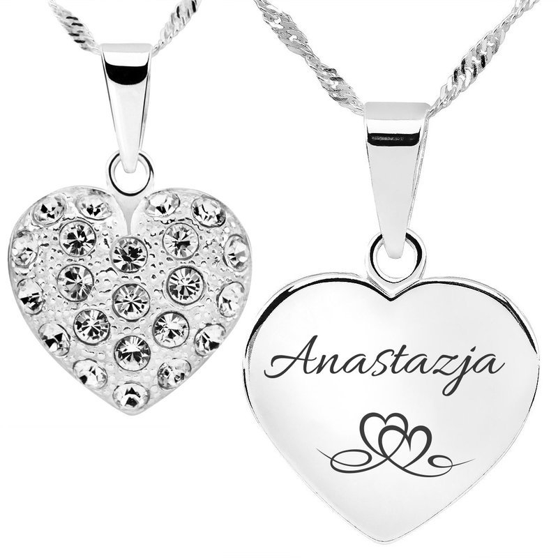 Srebrny Wisiorek Serce z Kryształami i Grawerem – Wyjątkowy Prezent