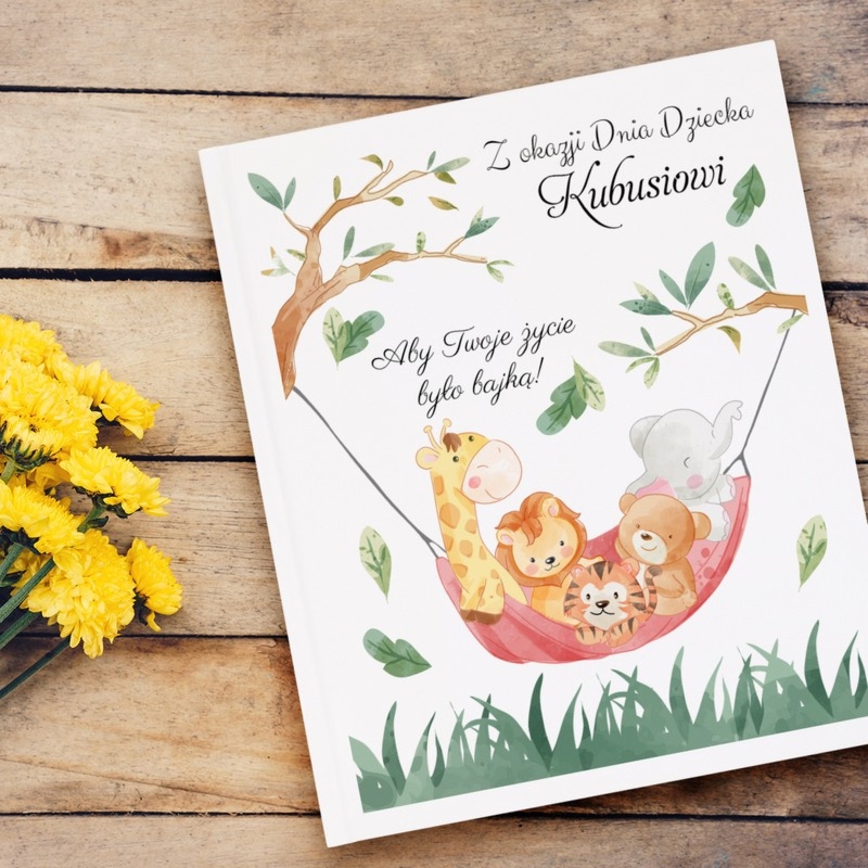 Księga Baśni Zielona Sowa z kolorowym nadrukiem na okładce i zdjęciem dziecka, klasyki H.Ch. Andersena i braci Grimm na Dzień Dziecka