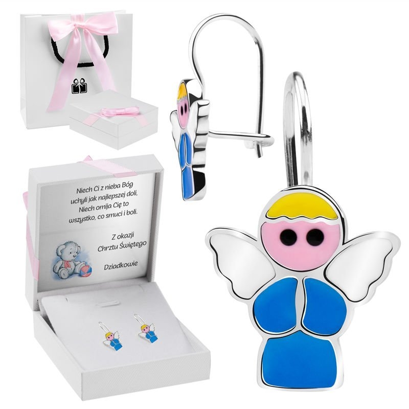 Kolczyki Aniołki Emaliowane Srebro pr. 925 Prezent z Dedykacją