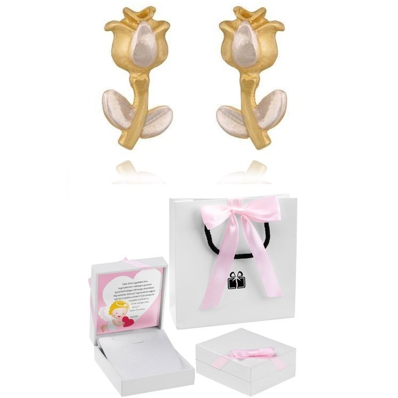 Kolczyki róże żółte i białe złoto pr. 585 Dedykacja