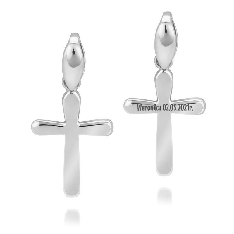 Srebrny krzyżyk 925 z grawerem na rewersie: krótkie imię i data do 20 znaków, na Chrzest, I Komunię Świętą i Bierzmowanie