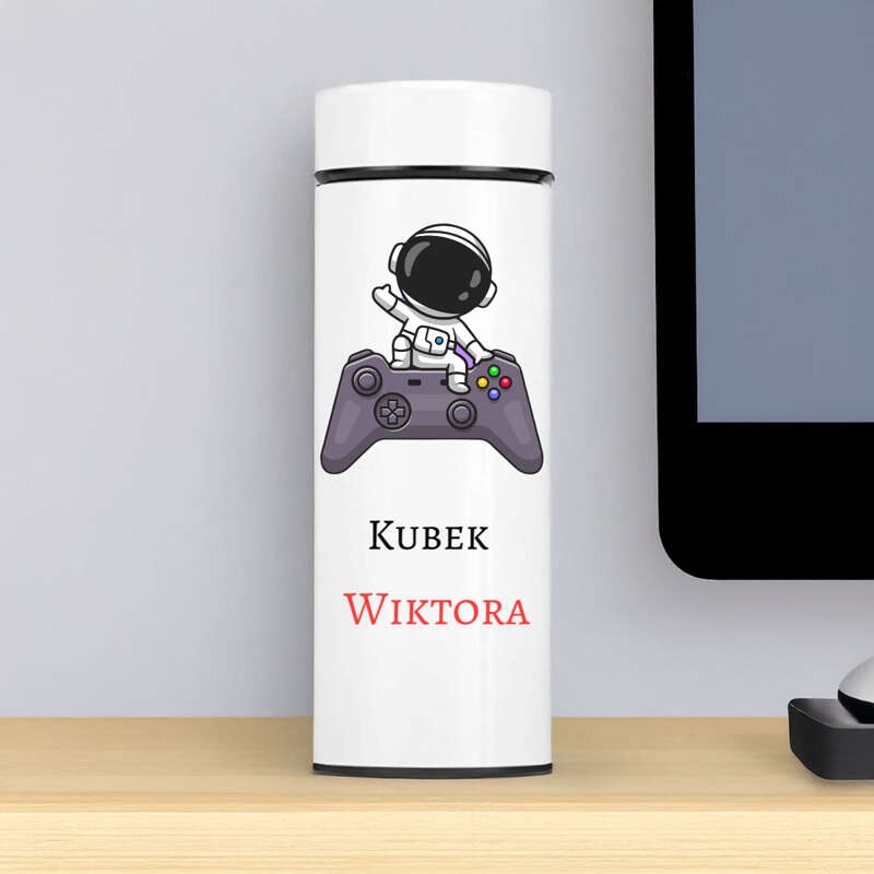 Personalizacja nadrukiem UV pozwala umieścić na kubku grafikę inspirowaną gamingiem, imię, pseudonim gracza, ulubione motto lub dedykację. Wyświetlacz LED na zakrętce dodaje nowoczesnego charakteru i pozwala w czasie rzeczywistym sprawdzić temperaturę napoju, co czyni ten kubek nie tylko funkcjonalnym, ale i stylowym dodatkiem.