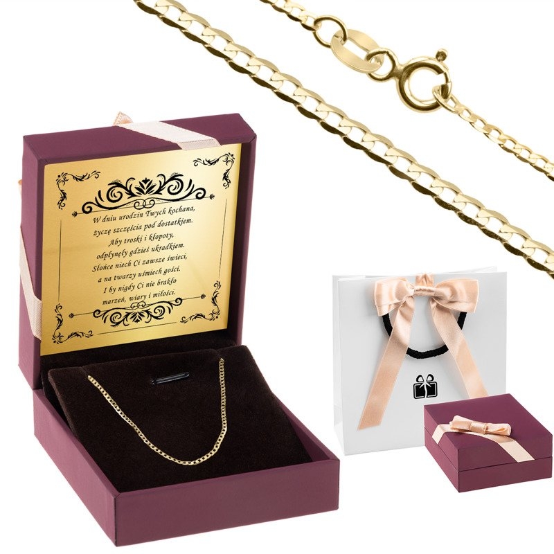 Łańcuszek złoty pr. 585 typu pancerka 45 cm Dedykacja
