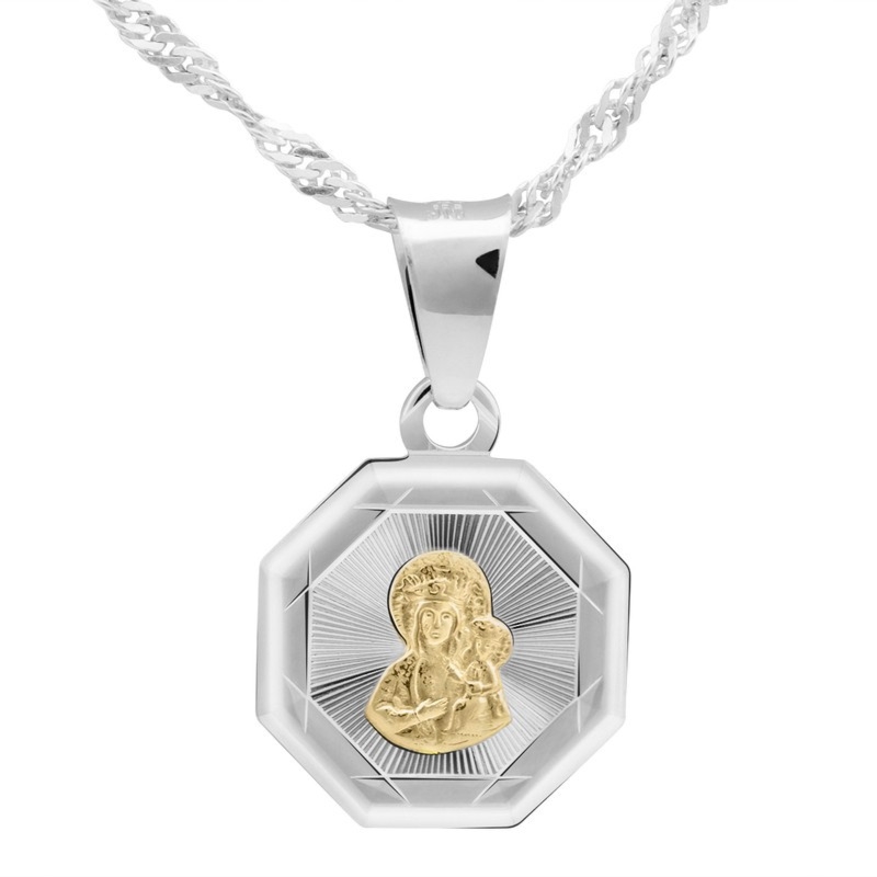 Medalik Matka Boska Częstochowska pozłacany z grawerem pr. 925