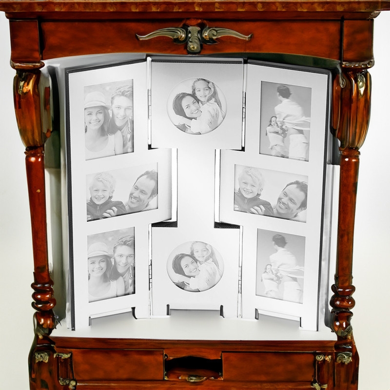 Metalowa multiramka na 8 zdjęć, polerowana na połysk, z czarnym tyłem. Można ją postawić i układać dowolnie, z grawerem na środku gratis