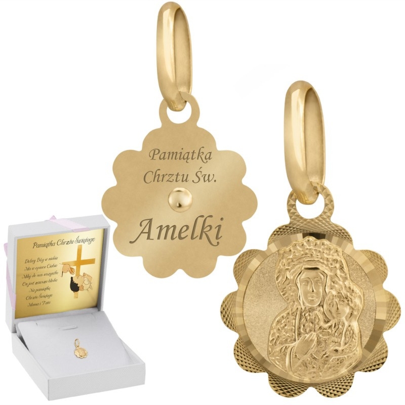 Na chrzest: złoty medalik 585 Matka Boska Częstochowska z grawerem