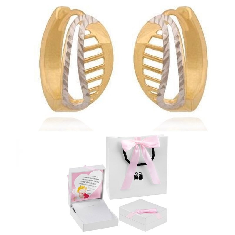 Nowoczesne kolczyki połączenie żółtego i białego złota próby 585 Dedykacja