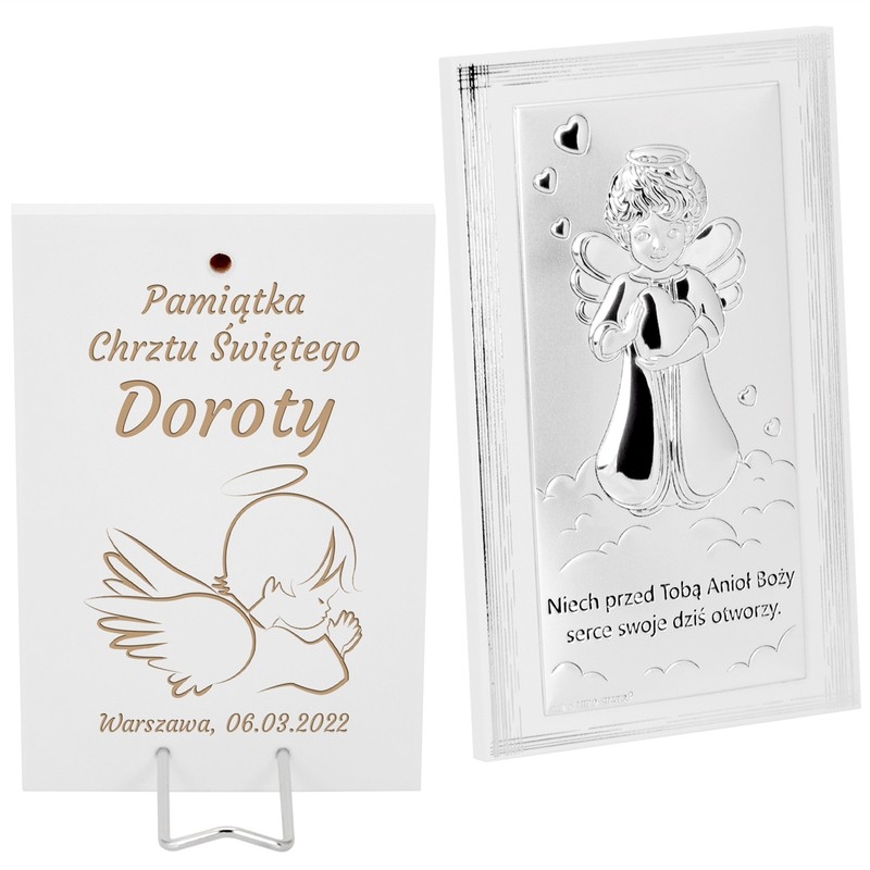 Obrazek z Aniołem Stróżem to wspaniała pamiątka Chrztu Św. Obrazek przedstawia postać religijną, dlatego będzie odpowiedni jako prezent na uroczystość Chrztu Św. od dziadków lub chrzestnych.