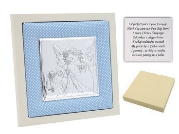 Proponujemy Państwu piękny obrazek przedstawiający anioła z dzieckiem wraz z dowolną dedykacją umieszczoną na odwrocie. Płaskorzeżba wykonana jest w technologii bilaminatu, co oznacza że na blachę z aluminium jest nałożona warstwa srebra pr. 925. Warstwa srebra zabezpieczona jest specjalnym lakierem ochronnym, dzięki któremu nie czarnieje i zachowuje swój blask. Producentem przedmiotu jest renomowana włoska firma Valenti&Co.