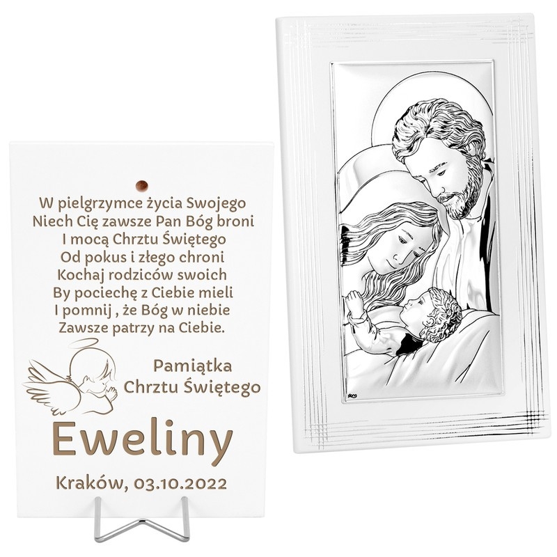 Na obrazku możemy wygrawerować dowolną dedykację. Może to być imię dziecka, data chrztu lub życzenia.