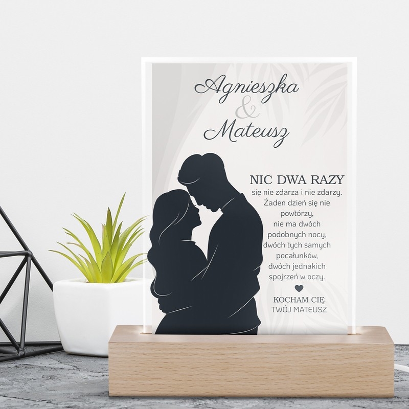 Podaruj bliskiej osobie wyjątkową ramkę LED z akrylu, która subtelnie rozświetli każde wnętrze, podkreślając Wasze uczucia. Możliwość dodania zdjęcia, imion i dedykacji sprawia, że to idealny prezent na rocznicę, walentynki lub wyjątkowy dzień.