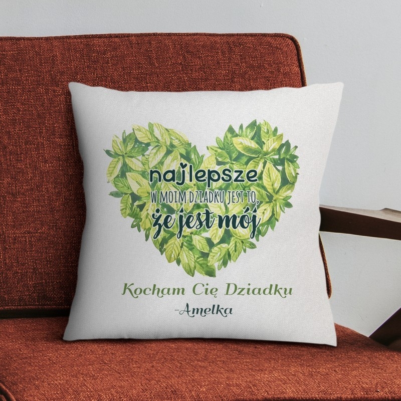 Proponujemy państwu wyjątkową, wygodną poduszkę z satynową poszewką. Przedmioty zostały wykonane z najwyższej jakości materiałów, dzięki czemu będą służyć dziadkowi przez długie lata. Miła w dotyku satyna sprawi, że odpoczynek będzie niezwykle przyjemnym doświadczeniem. Na poszewce umieszczamy personalizowany nadruk, który sprawia, że prezent stanie się wyjątkową i niepowtarzalną pamiątką. Piękny, zielony wzór w kształcie serca i pięknego nadruku sprawia, że będzie to idealny prezent dla Dziadka.