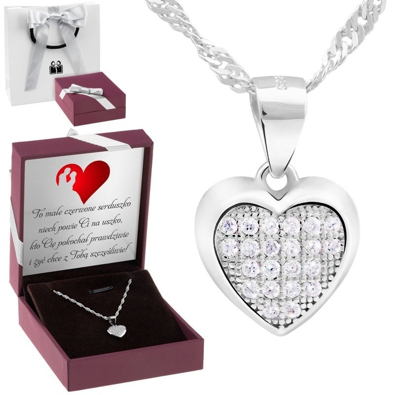 Srebrna zawieszka pr. 925 serduszko z kryształkami Dedykacja