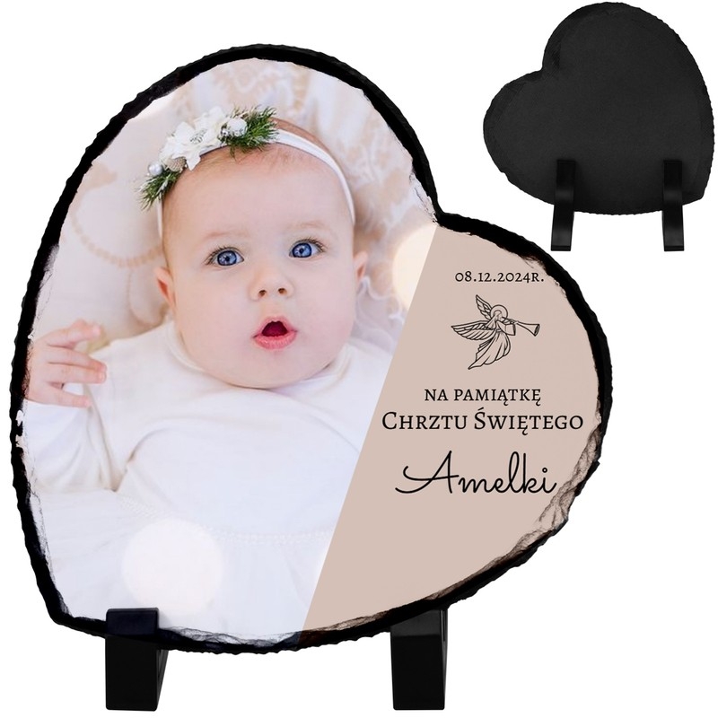 Chrztu Święty to niezwykły moment w życiu dziecka i jego rodziny. Aby uczcić tę wyjątkową okazję, warto podarować coś, co stanie się trwałą pamiątką. Prezentujemy elegancką statuetkę w kształcie serca, wykonaną z wysokiej jakości fotogranitu, z możliwością pełnej personalizacji.