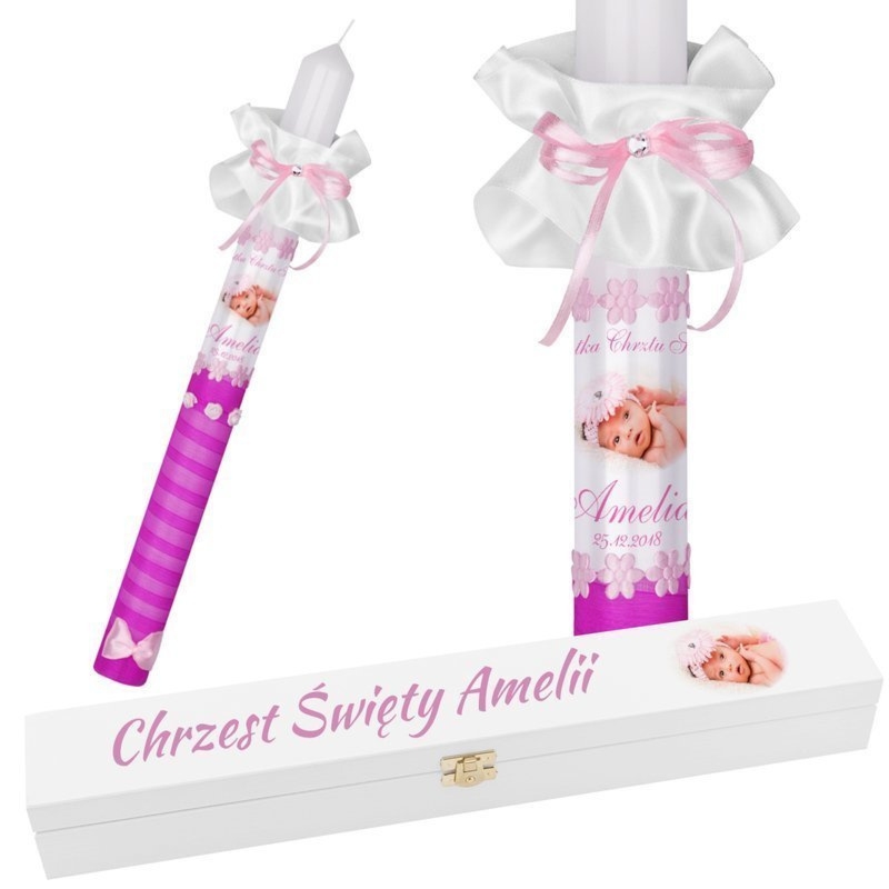 Ręcznie zdobiona świeca G1 z nadrukiem zdjęcia lub grafiki oraz biała skrzynka z trwałym nadrukiem UV, z profitką i okapnikiem