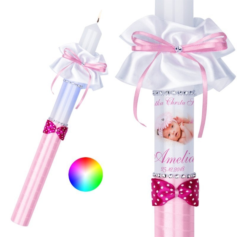 Świeca na chrzest z podświetleniem i nadrukiem ze zdjęciem G9