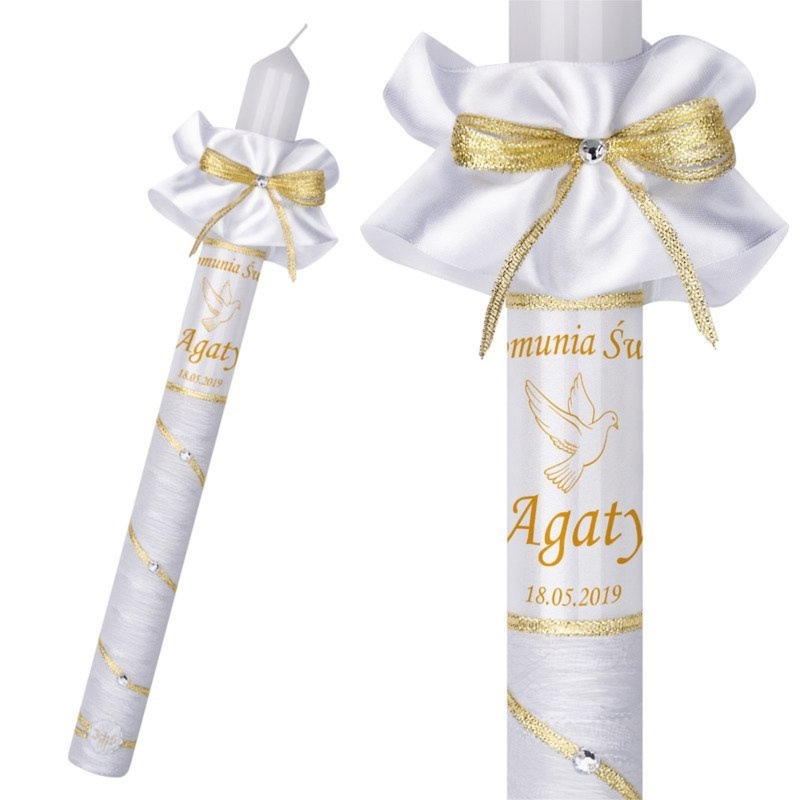 Świeca na I Komunię Świętą złota z personalizacją nadruku