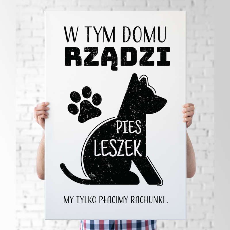 W tym domu rządzi pies – obraz do pokoju 40×60 prezent dla psiarza