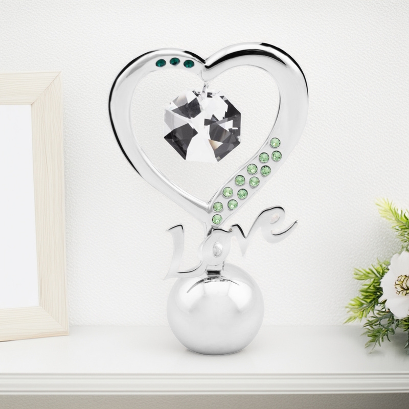 Platerowana srebrem figurka Serce Love z kryształami w welurowym pudełku z tabliczką z dowolną dedykacją
