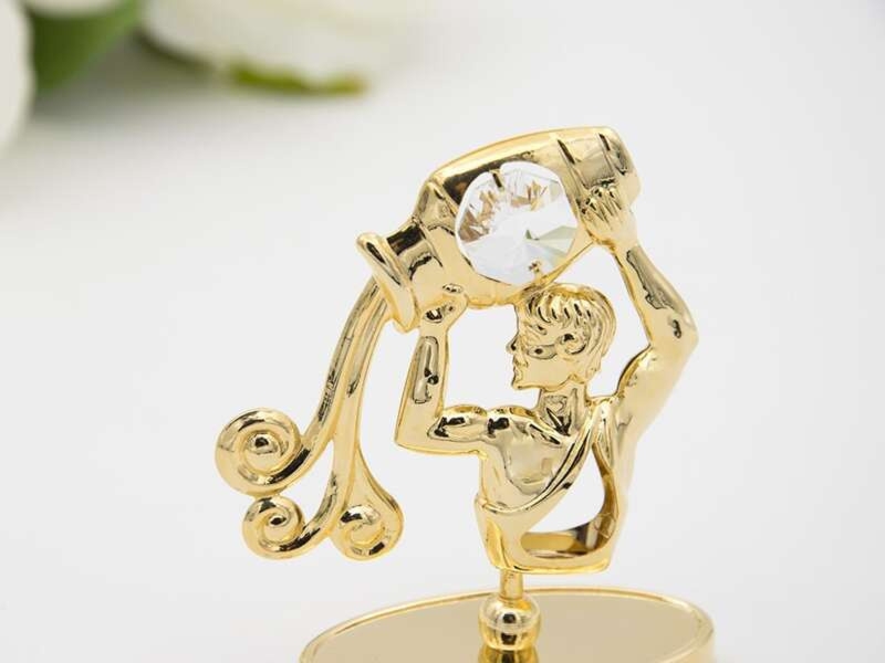 Figurka Wodnika platerowana 24-karatowym złotem z białym kryształem i tabliczką z dedykacją lub zdjęciem, w etui prezentowym