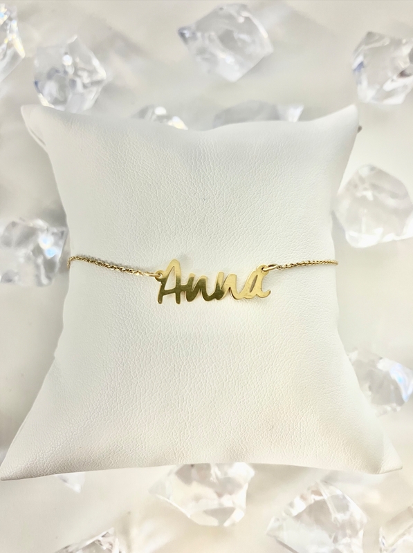 Złota bransoletka z imieniem Anna.