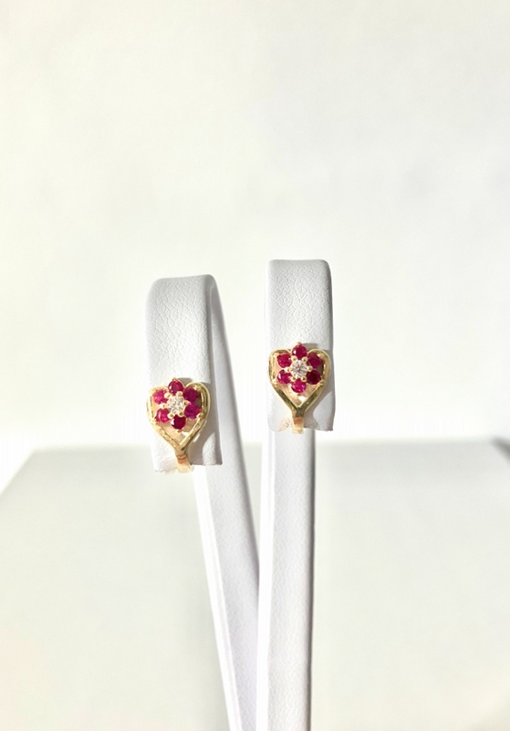 Złote kolczyki dziewczęce kwiatek z różowymi kamieniami / Próba 585