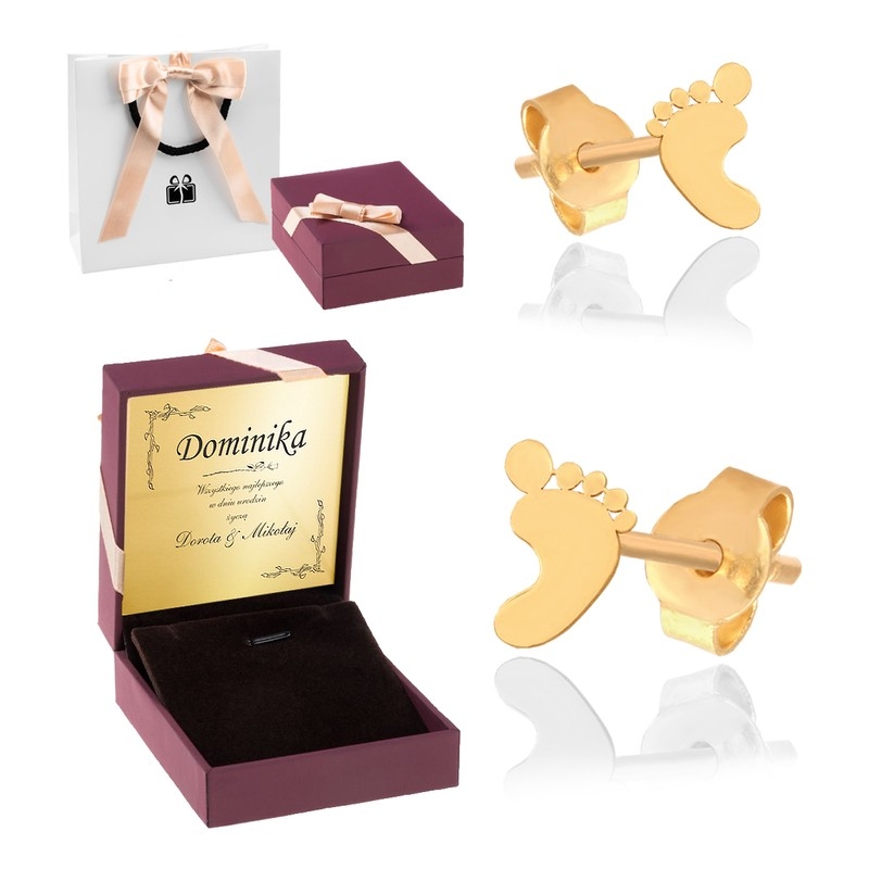 Złote Kolczyki / pr. 585 / Własna dedykacja / Kolczyki stópki / Prezent dla młodej Mamy / Prezent dla Żony