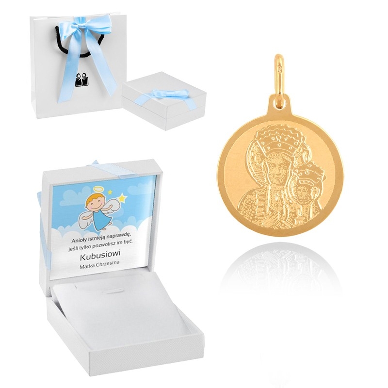 Złoty Medalik / pr. 585 / Dedykacja / Medalik Matka Boska / Prezent na Chrzest dla Chłopca / Pamiątka Chrztu