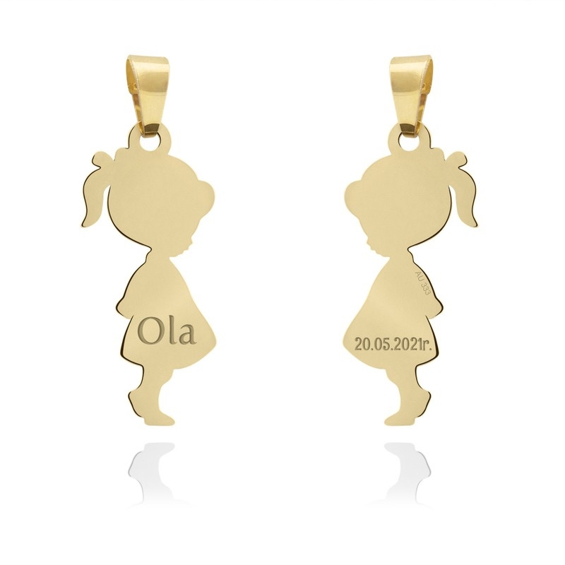 Złota zawieszka o pr.333 z motywem dziewczynki to połączenie tradycyjnego prezentu z żółtego złota z oryginalną i nowoczesną formą. Wisiorek nie straci blasku i nie ściemnieje. Będzie doskonale prezentował się, gdy dziecko dorośnie do noszenia biżuterii. To idealny prezent na chrzest, ale również na roczek lub narodziny.