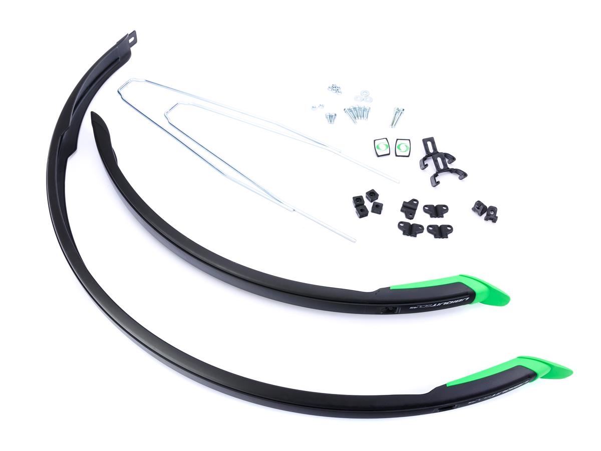 Błotnik 28″ UBIQUIT PCV SDL 46 mm, czarny/chlapacz zielony, wsporniki/śruba – Oficjalny Sklep Romet